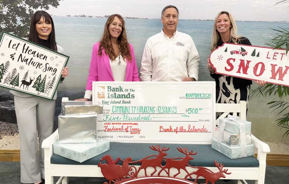 Bank of the Islands is proud to join the business partners of Community Housing & Resources (CHR) as a Fir Sponsor for the CHR Festival of Trees. The event will start with a Community Day at the Sanibel Community House on Friday, November 21, followed by a Gala and Auction on Saturday, November 22. A Business Holiday Decorating Contest rounds out the Festival of Trees activities being offered to the Sanibel-Captiva community.